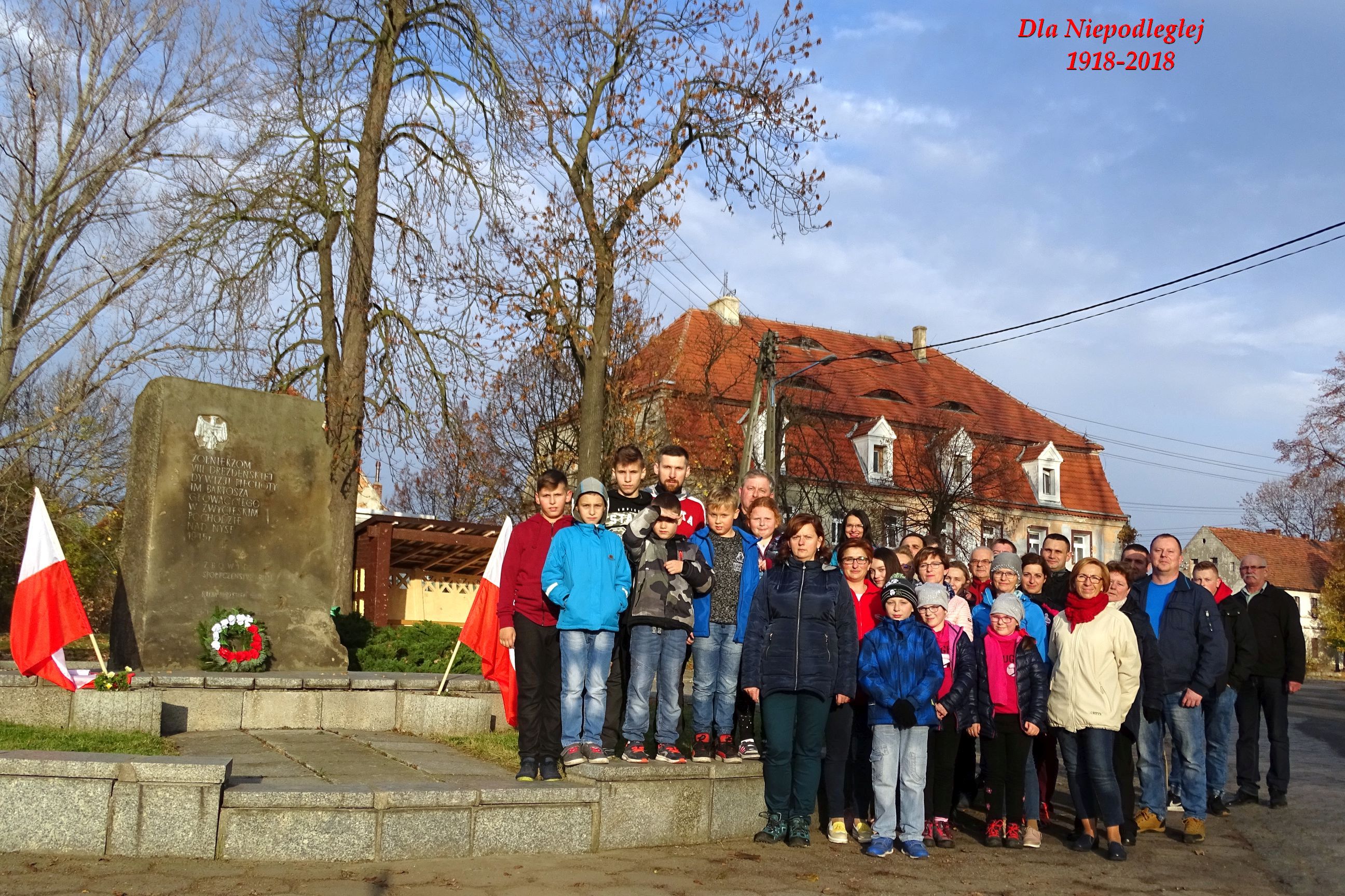 11 listopada w szczególny sposób uczciliśmy setną rocznicę odzyskania przez Polskę niepodległości. Wybraliśmy się na rajd rowerowy, którego uczestnikami były całe rodziny. Trasa wiodła z Lasowic do Rui. Naszym celem był Pomnik poświęcony żołnierzom z VIII Drezdeńskiej Dywizji Piechoty im. Bartosza Głowackiego w Zwycięskim Pochodzie nad Nysę w 1945 r. Przy Pomniku wysłuchaliśmy krótkiej historii,